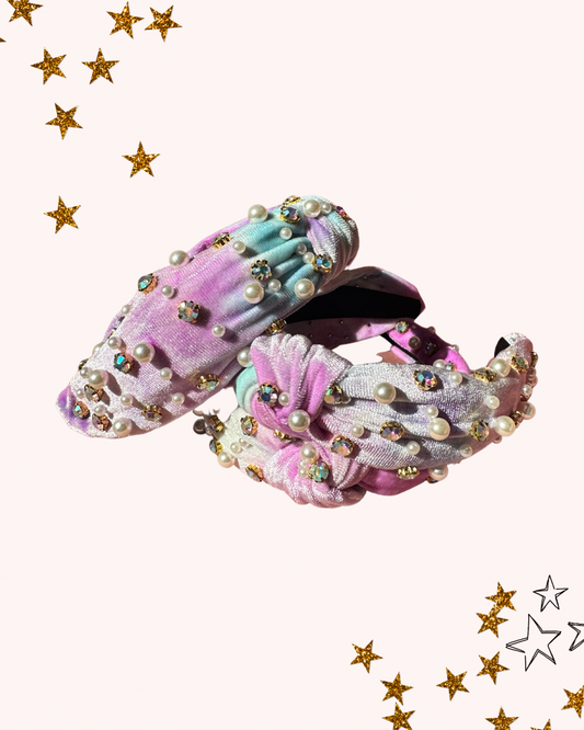 Tie Die Velvet Top Knot Headband with Rhinestones
