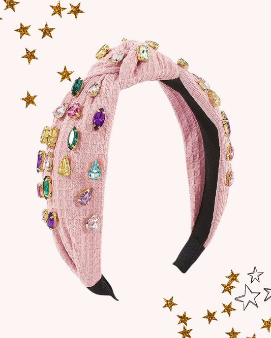 Waffle Knit Top Knot Headband with Colorful Rhinestones